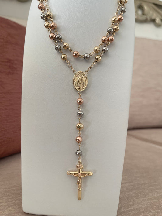 Rosario 3 oros balín 6 mm ( 65cms)