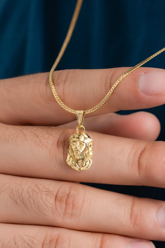 Cadena Serpiente Plana 1 mm 65 Cm + Dije Rostro Mediano Tallado