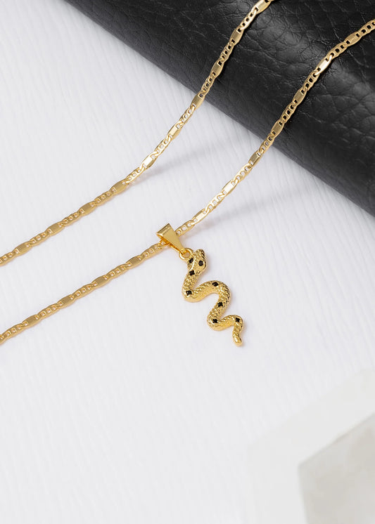 Cadena Escalera y Plana 65 Cms + Dije Serpiente Negra