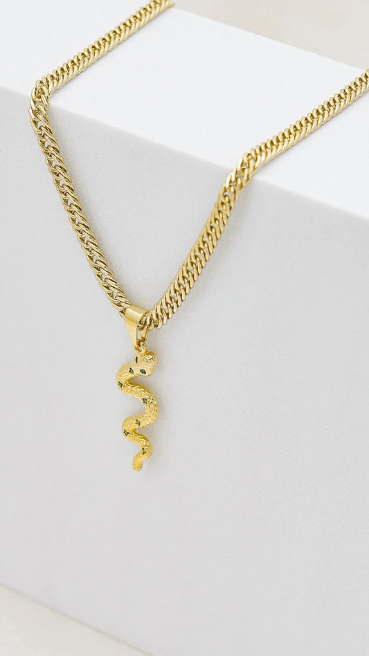 Cadena Continua 3mm 45cm + Dije Serpiente Circonias Verde