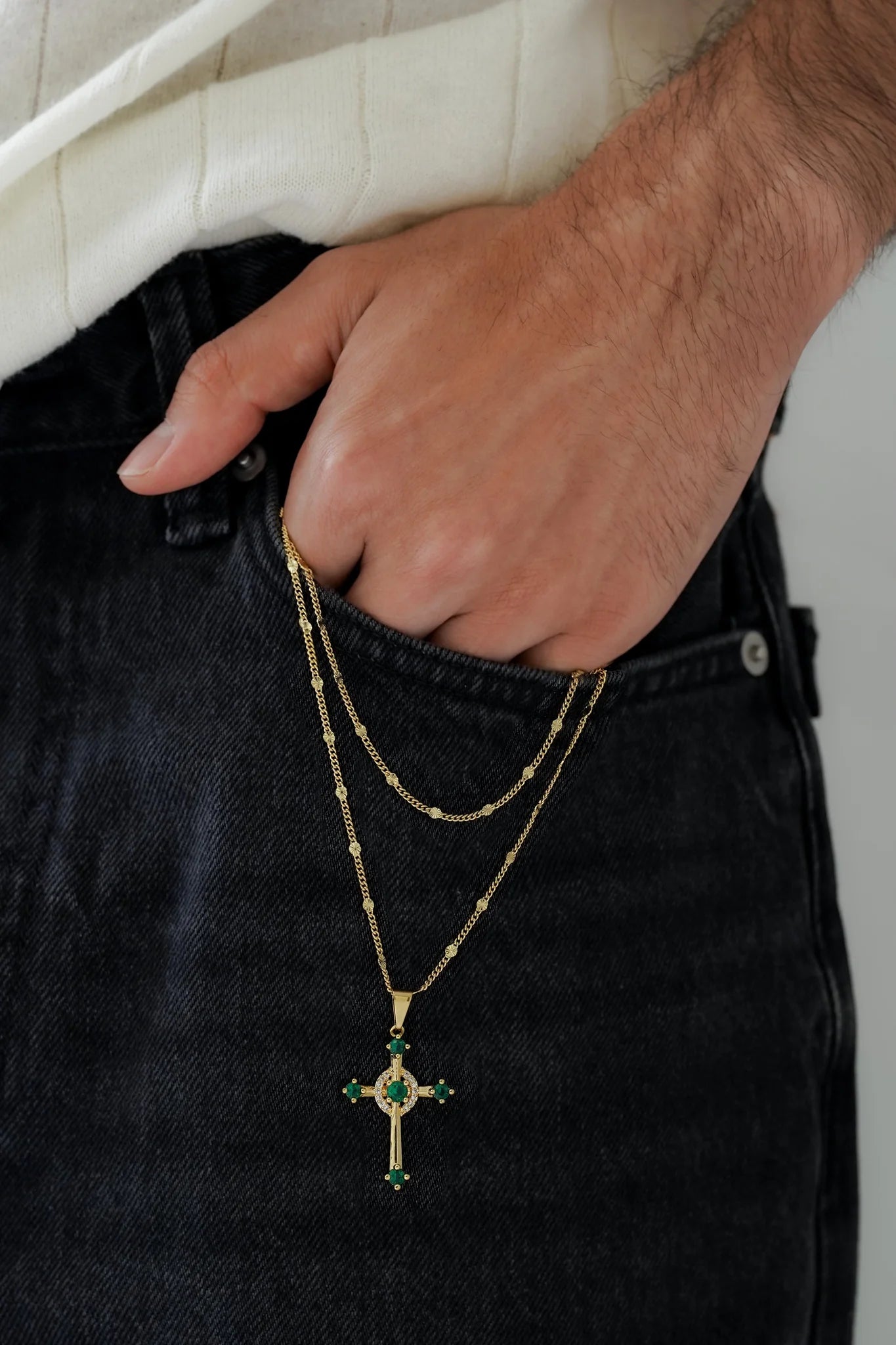 Cadena Cubana Sol 65 Cm + Dije Cruz Verde